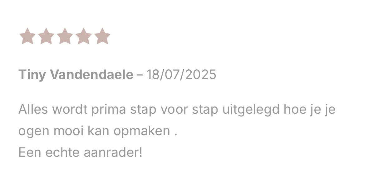 Je hoeft niet meer te twijfelen welke producten je nodig hebt. Ik toon je wat werkt, wat overbodig is en hoe je alles mooi aanbrengt.