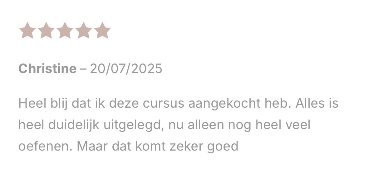 Deze cursus is enkel voor de ogen en raad ik aan als je de basis al onder de knie hebt.