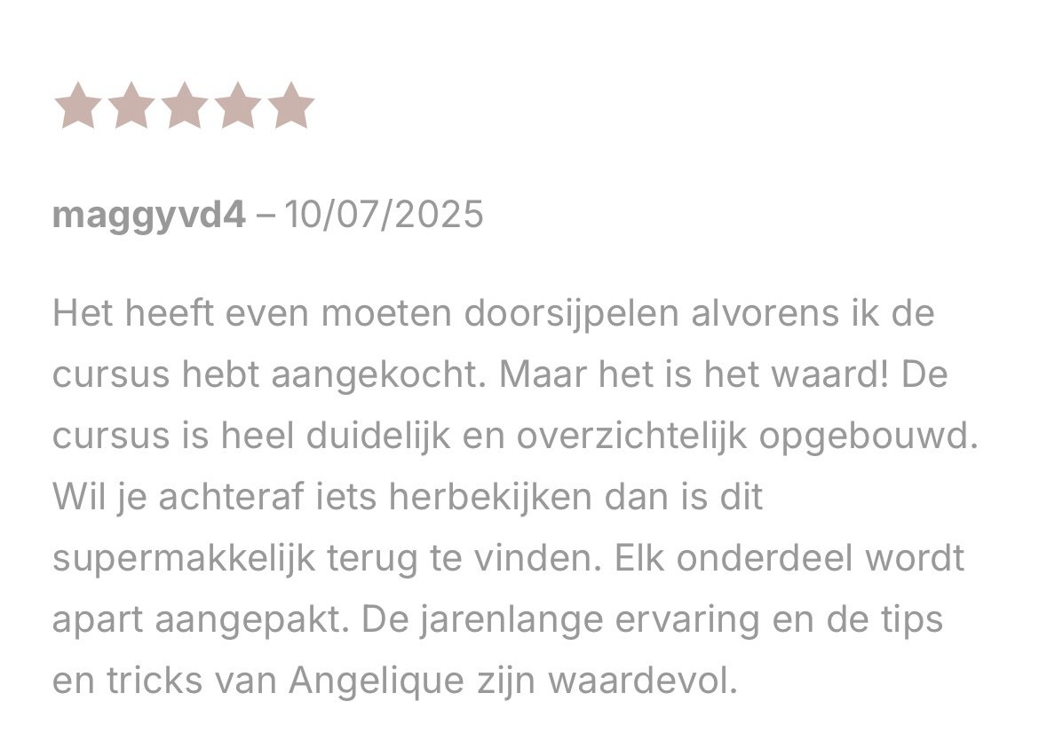 Ja. Als je instapt, kan je deelnemen aan de exclusieve livesessies waar je vragen kan stellen en tips krijgt die ik enkel deel met cursusleden.